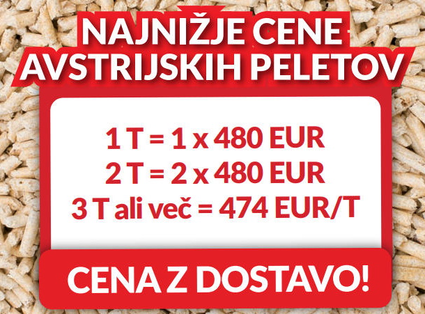 Cena 474€ na tono je ob naročilu 3 ali več ton peletov.